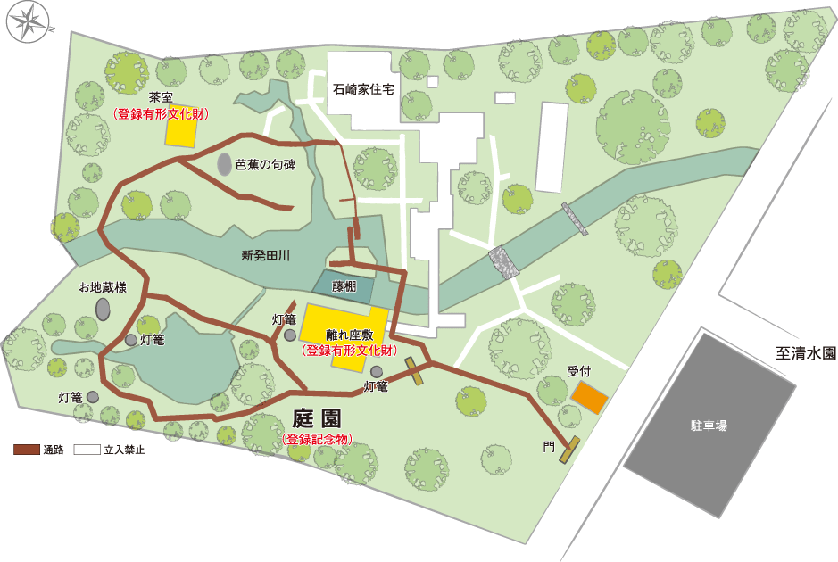 新発田川が中央を流れている全国的にも珍しい日本庭園。1,500坪におよぶ敷地面積の中に母屋、離れ座敷などの明治の建築があります。離れ座敷と茶室は登録文化財に登録されており、予約客しか入れない名園です。